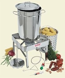 (More customer reviews)Very high quality product (all stainless, including stand and burner). Simple straightforward design. Easy to use. Comes with everything you might need, including a thermometer for oil/water. Can be used for many things other than turkey deep fry. Who wants a unifuntion piece of equipment? Steamer/boiling basket for veggies, shrimp, whatever. Plenty big for crab boil, crawdads, etc. Worth the cost. As they say, you get what you pay for, in this case even more.