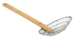 Helen\'s Asian Kitchen stainless steel strainer featrues a 5-inch diameter stainless steel bowl that won't rust and is dishwasher safe. The bamboo handle is non-conductive so it does not transfer heat. Discover what cooks in the orient have known for centuries. The web-like design of the bowl quickly whicks away oils, water and broth. This means, when frying, the strainer quickly disipates the oil away from the food leaving a crisp, crunchy coating. When pulling food out of boiling water or broth, the open, web shape leaves the liquid behind.