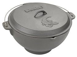 This non-traditional design Jambalaya Pot has a rounded interior for cooking stews, gumbo and jambalaya, but has a flat bottom so it can sit on an outdoor gas cooker.Totally unique to the industry!Excellent for hunting, fishing, camping, scouting, and your own backyard.With quality construction that sets the industry standard, it is made heavy duty, rough and rugged.