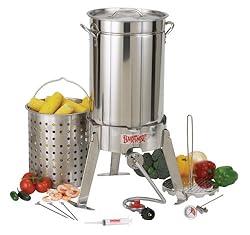 Bayou Classic Stainless Steel Cookware is the premium choice for those who demand the highest quality products for their outdoor cooking needs.The 30-Quart polished Stainless Steel Stockpot allows you to fry a whole turkey in as little as 45 minutes.With the included Skewer Set, this item transforms into a Gourmet Chicken Fryer, making it possible to fry 3 chickens in 20 minutes!The Stainless Perforated Basket is perfect for boiling seafood, crawfish, clams, and vegetables.