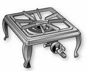 These light-weight and portable burners provide an economical choice for cooking any food dish. Made from durable cast iron. Dimensions 10 1/2 D x 11 1/2 L x 5 3/4 H. 15,000 BTU output. LP only!