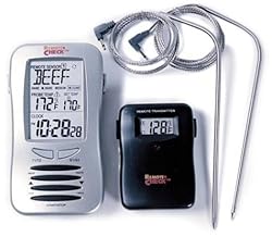 The RediChek remote features a transmitter that reads the internal food termperature with a digital electronic food probe, then sends that information wirelessly up to 100 feet away, freeing you from standing next to the oven or grill during the cooking period.When the desired temperature is reached an alarm goes off!The taste or doneness of meats can be determined to be rare, medium, medium well, or well done based on the type of food and the internal temperature reached during cooking.